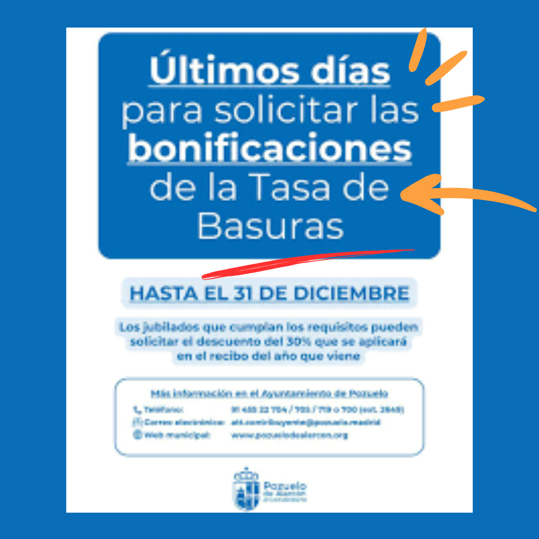 ATENCIÓN: Antes del 31 de diciembre tenéis que solicitar las bonificaciones en la Tasa de Basuras para 2026.