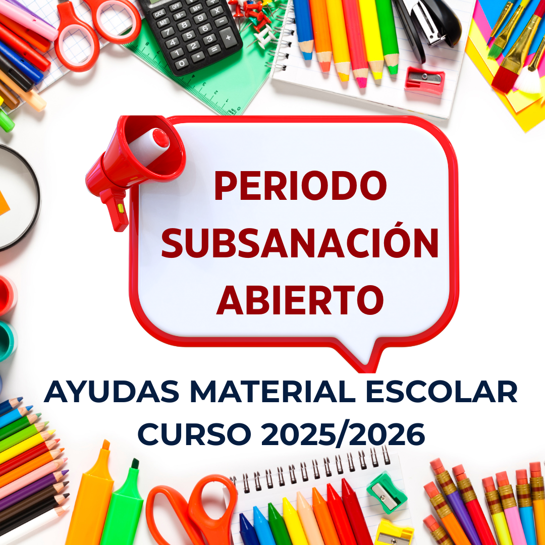 Ayudas material escolar curso 2025/2025, periodo de subsanación abierto!