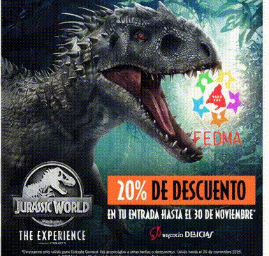 ¡Disfruta de un 20% de dto. en tu entrada general para Jurassic Wolrd: The Experience hasta el 30/11! *Descuento no acumulable a otras promociones o descuentos. Solo aplicable en entrada general.