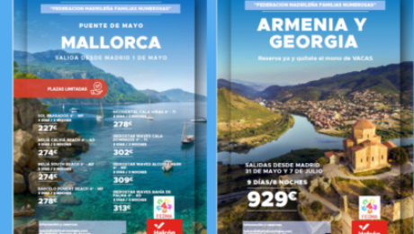 Halcón Viajes ha lanzado dos nuevas ofertas especiales para nuestros socios, se trata de una «Estancia en Mallorca» para aprovechar el puente de Mayo y por otro lado una escapada especial para «Armenia y Georgia» con salida el 31 de mayo.