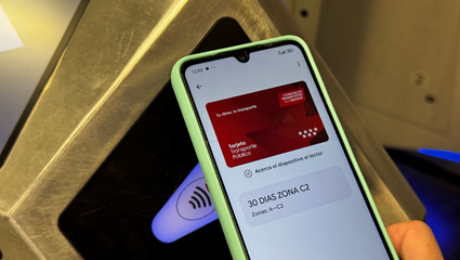 Ya es posible pasar la tarjeta transporte de Madrid desde el móvil. Para hacerlo, hay que descargarse una nueva app, llamada Mi tarjeta transporte, que de momento solo está disponible para Android 9.0 o superior, pero en los próximos meses llegará también a los móviles iOS.