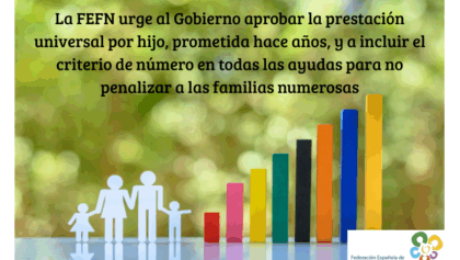La FEFN pide acabar con esta situación reconociendo a todos y cada uno de los hijos en todas estas prestaciones, incrementando límites y cuantías por cada uno de ellos, porque todos los hijos tienen necesidades y todos deben ser computados a efectos de cualquier ayuda.