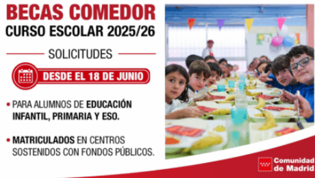 Abierto el plazo para las Becas de Comedor del curso 2025-26 de la Comunidad de Madrid