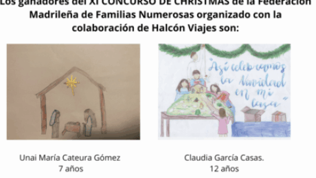 Los ganadores del XI CONCURSO DE CHRISTMAS de la Federación Madrileña de Familias Numerosas organizado con la colaboración de Halcón Viajes son: