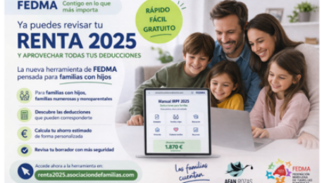 Desde FEDMA sabemos que muchas familias numerosas no siempre conocen todas las deducciones a las que pueden tener derecho o no tienen claro cómo revisarlas en el borrador. Por eso, esta herramienta nace con un objetivo muy concreto: ayudaros a identificar posibles beneficios fiscales y facilitaros la campaña de la Renta con información clara, práctica y adaptada a la realidad de las familias.